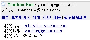 百度很久前就知道百度站长平台,那时候百度一直都不收录我的站点,所以看了网上的办法发邮件去申请,但是那时候石沉大海,后来过了一段时间,经过SEO后百度终于收录了我的站,那天突发奇想有跑去站长平台,发了邮件,今晚突然就收到回音了··好开心~~~~