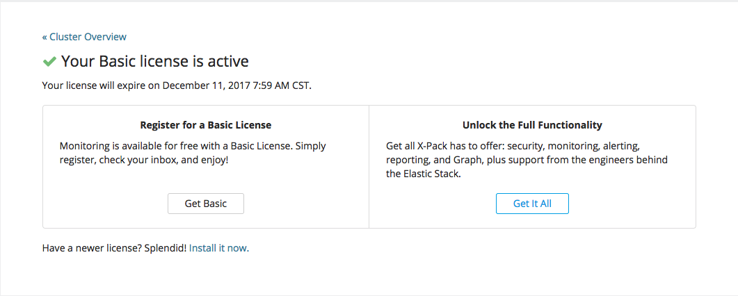 刚刚把之前的 ELK 集群化,想到还是做一下监控比较好,因为已经都升级到了 5.x,所以决定使用官方的 X-Pack 来,因为 X-Pack 在免费授权里面提供了监控功能(也指提供了监控功能)。