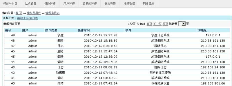 为shl(深喉咙)CMS创建管理员日志模块